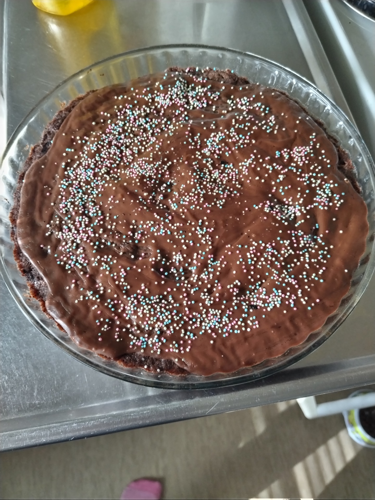 Vuoan koko noin 20 x 30 cm.- Sulata voi ja sekoita suklaa