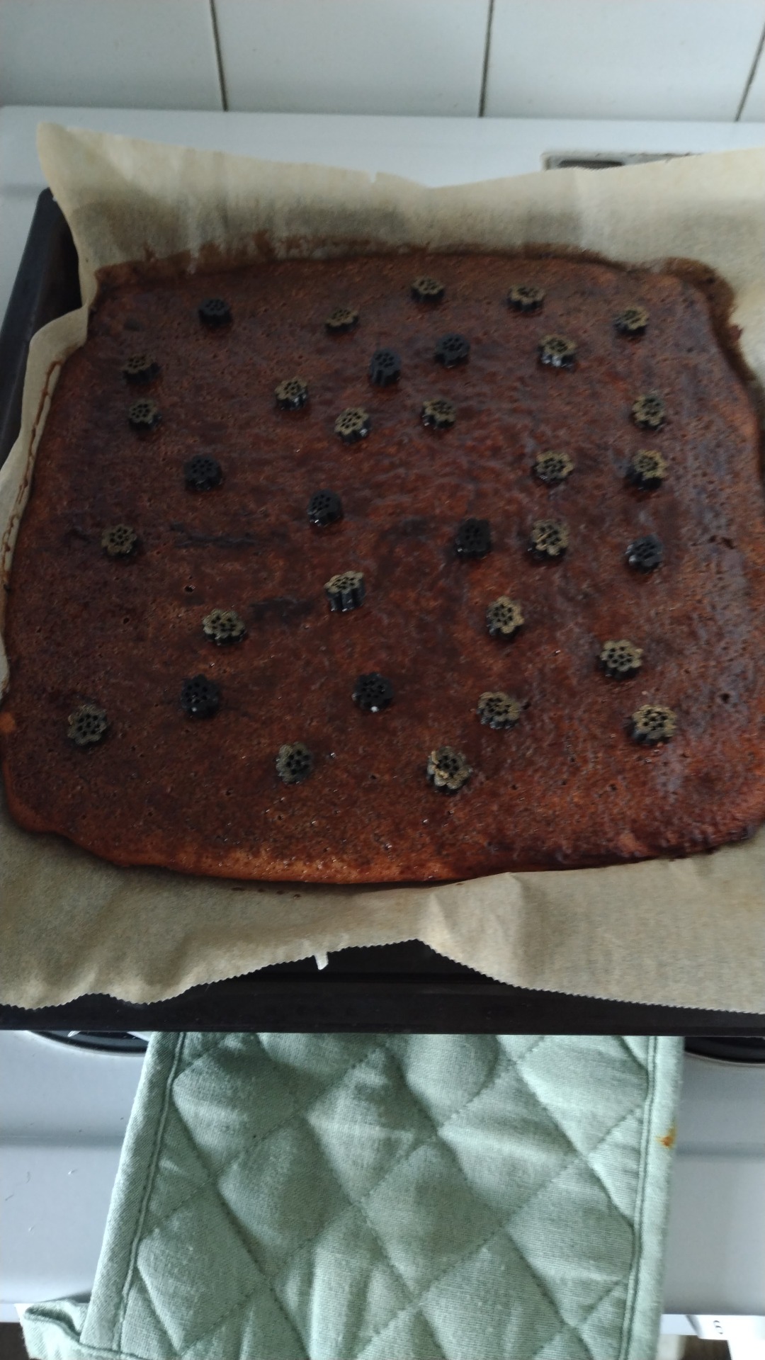 15 minuuttia uunin keskitasolla. (Keksi jää hieman fudgemaiseksi,